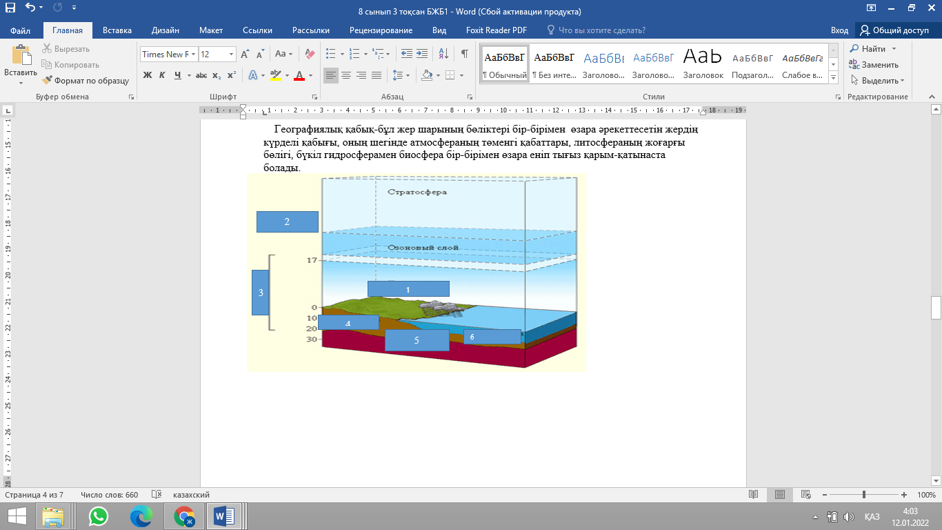 1.Географиялық қабықтың құрылымының сызбасын пайдаланып,берілген сандарды ретімен анықтамалығын толықтырыңыз.