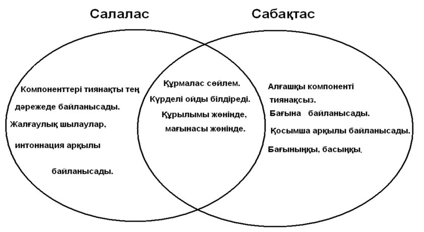 1.Қоғамдық-саяси, әлеуметтік-экономикалық, ғылыми тақырыптарға байланысты әртүрлі жанрдағы кең көлемді мәтіндердегі (пікірталас, дәріс ) мақсатты аудитория мен көркемдегіш құралдардың рөлін талдайды 2.Салалас және сабақтас құрмалас сөйлемдердің мағыналық түрлерін ажырата біледі 3.Сабақтас құрмалас сөйлемдерді түрлендіріп қолданады. ( мезгіл бағыныңқы сабақтас құрмалас сөйлем) |