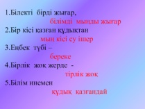 Талқылау түсінік беру: Бірлік және ынтымақтастық ұғымдарын түсіндіріңіз. Бұл құндылықтардың үйлесімді қоғамға қалай ықпал ететінін талқылаңыз. 1. Мәдени контекст: Дәстүрлі нақыл сөздер немесе әңгімелер сияқты осы құндылықтардың маңыздылығын көрсететін қазақ мәдениетінен мысалдармен бөлісіңіз. 2. Дәйексөздер: Бірлік пен ынтымақтастық туралы дәйексөз жазылған үлестірме қағаздарды тарату. Олардың мағыналары мен өзектілігін талқылаңыз. Топтық жұмыс: Оқушыларды шағын топтарға бөлу. Әр топ «Бірлік» және «Ынтымақ» ұғымдарын суреттейтін постер жасайды. Олар мыналарды қамтуы керек: 1. Әр терминнің анықтамасы. 2. Өз өмірінен немесе қазақ мәдениетінен мысалдар. Презентация: 10 минуттан кейін әр топ өз идеялары мен өнер туындыларын түсіндіре отырып, сыныпқа постерін ұсынады. |