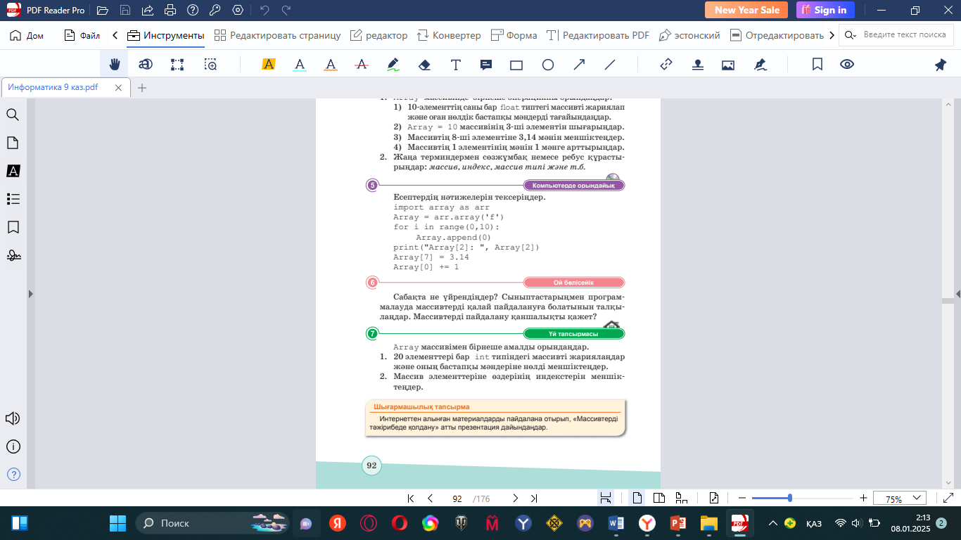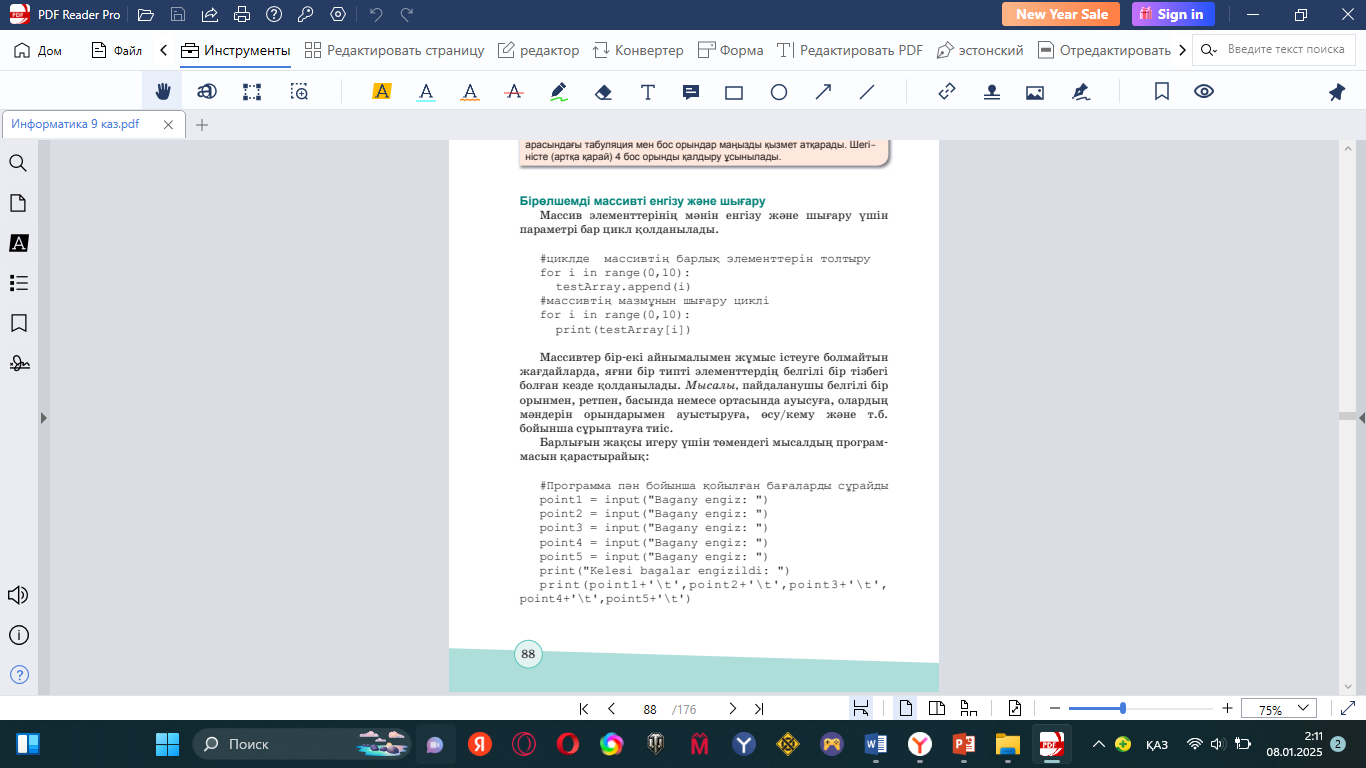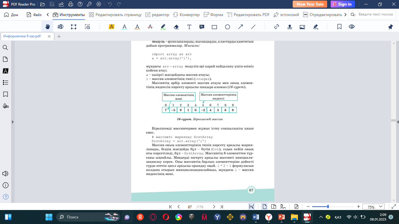 9.3.3.1 Бір өлшемді массивтер пайдаланып Python программалау тілінде программалар жасау; |