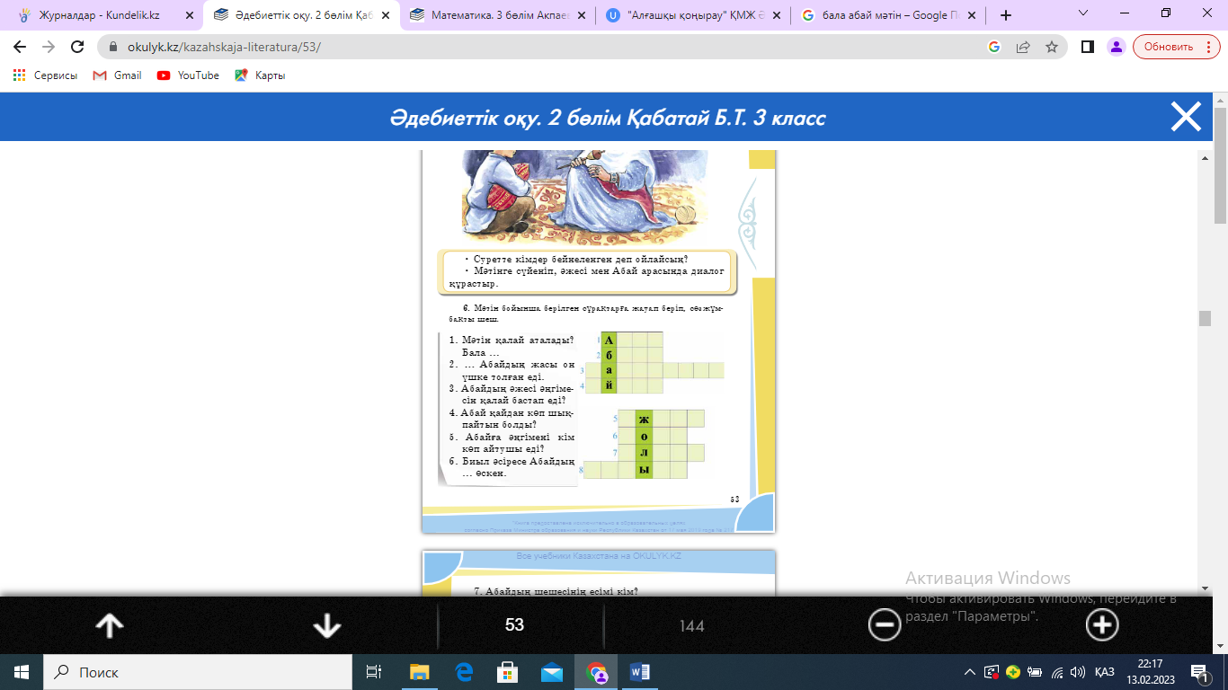 Мәтінге сүйеніп ,әжесі мен Абай арасында диалог құрастыр 2 топ Мәтін бойынша берілген сұрақтарға жауап беріп Сөзжұмбақты шеш