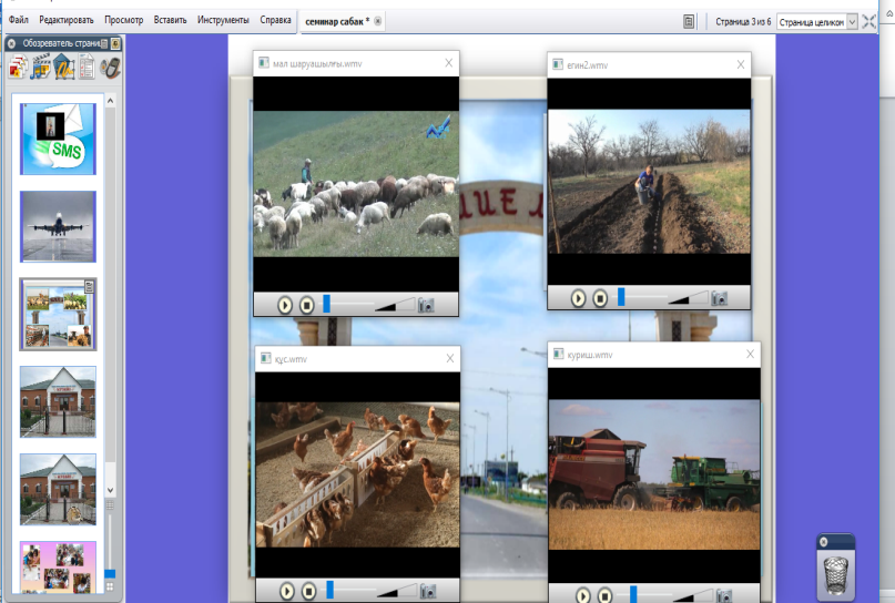 (Балалар активпеннің көмегімен шаруашылық түрін басқанда, сол шаруашылық жайлы бейнехабарлама көрсетіліп, балалар ауызша таныстырады.)