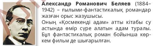 IV.Сабақты қорытындылау. 1. Александр Беляев кім? 2. Александр Беляевтың "Қосмекенді адам" кітабы не туралы жазылған? 3. Түрлі жануарларды ұшырып көріп, артынан өздері де ұшқан ағайынды жігіттер кімдер? 4. Олар ұшу мақсатына нені пайдаланды? 5. Аэростат дегеніміз не? 6. Стратостат дегеніміз не? (оқу мақсаты мен бағалау критерийлеріне оралу): -Бүгінгі оқу мақсаты қандай болды? -Жетістік критерийлеріне жеттік пе? Бұл сабақта қандай жаңа білім алдың Үй тапсырма . Мәтінді түсініп оқу. Бүгінгі заманда ұшақ, тікұшақ болмаса, адам үшін қандай қиындықтар болар еді? Әңгімелеуге дайындал. Оқушылардың білімін бағалау Рефлексия