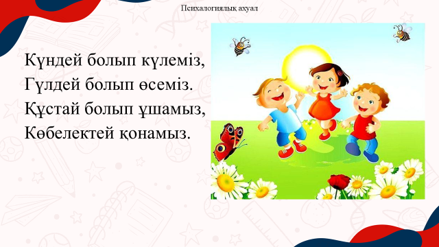 Ұйымдастыру кезеңі Тақтаға жазылған өлеңді оқушылар мәнерлеп оқып, әс әрекетпен көрсетеді.
