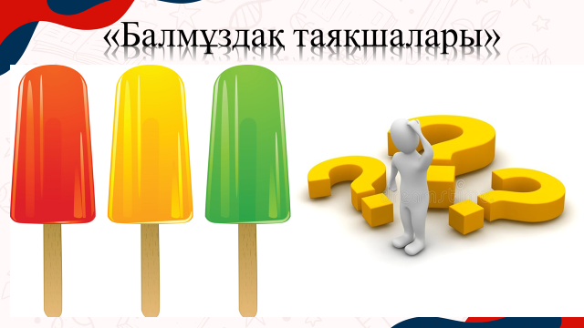Балмұздақ таяқшасын алып, сұрақтарға жауап береді. Сабақ мақсатымен танысады |