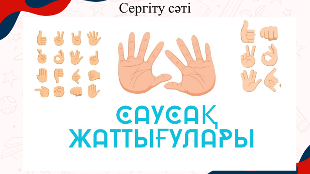 Сөзжұмбақтың жауаптарын оқи отырып, сұрақтар құрастырады. Әр оқушы өзіне берілген сөздерді, септеп жазады. Жұппен бірлесе отырып, қағазда берілген тапсырманы орындайды. Оқушылар саусаққа арналған жаттығуларды жасайды. Оқушылар топ бойынша септік атауларын қорғап шығады. |