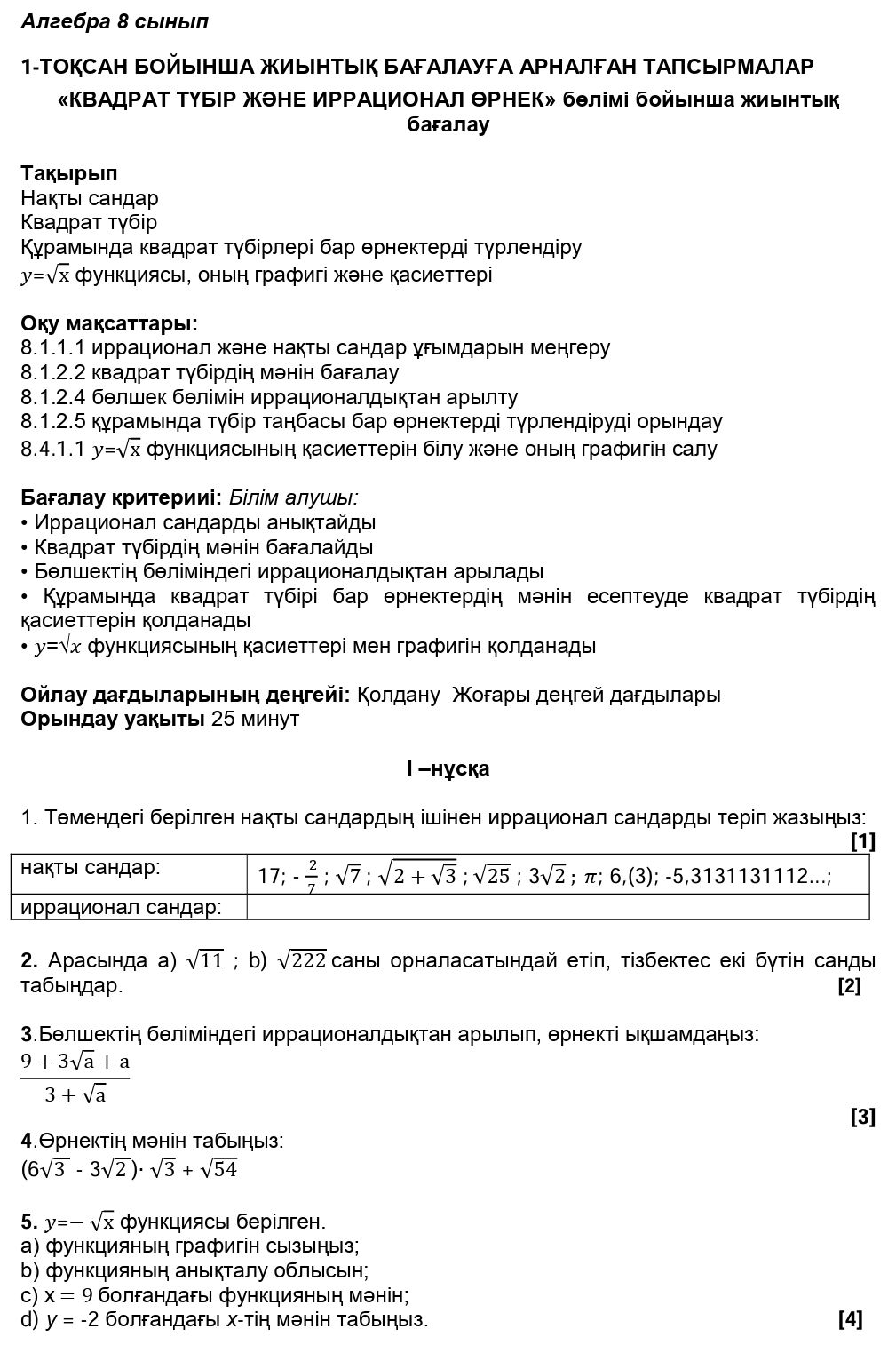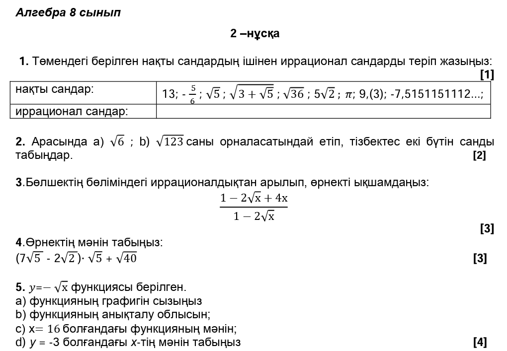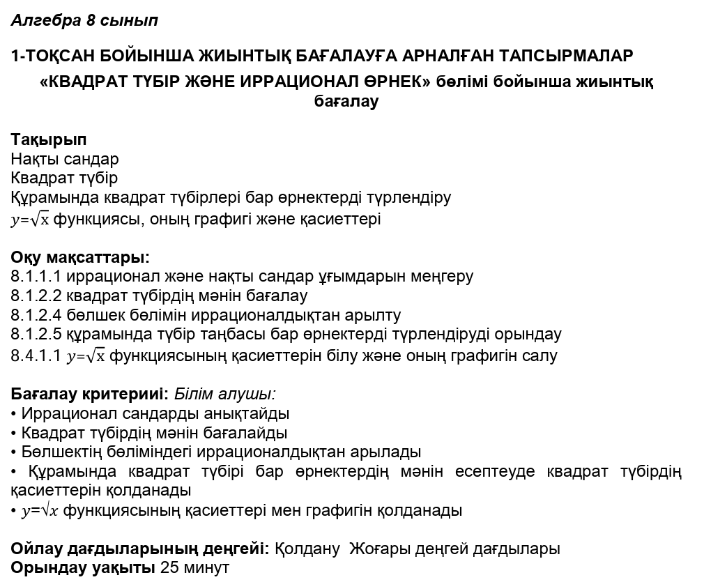 БЖБ№1 8сынып Алгебра 1токсан