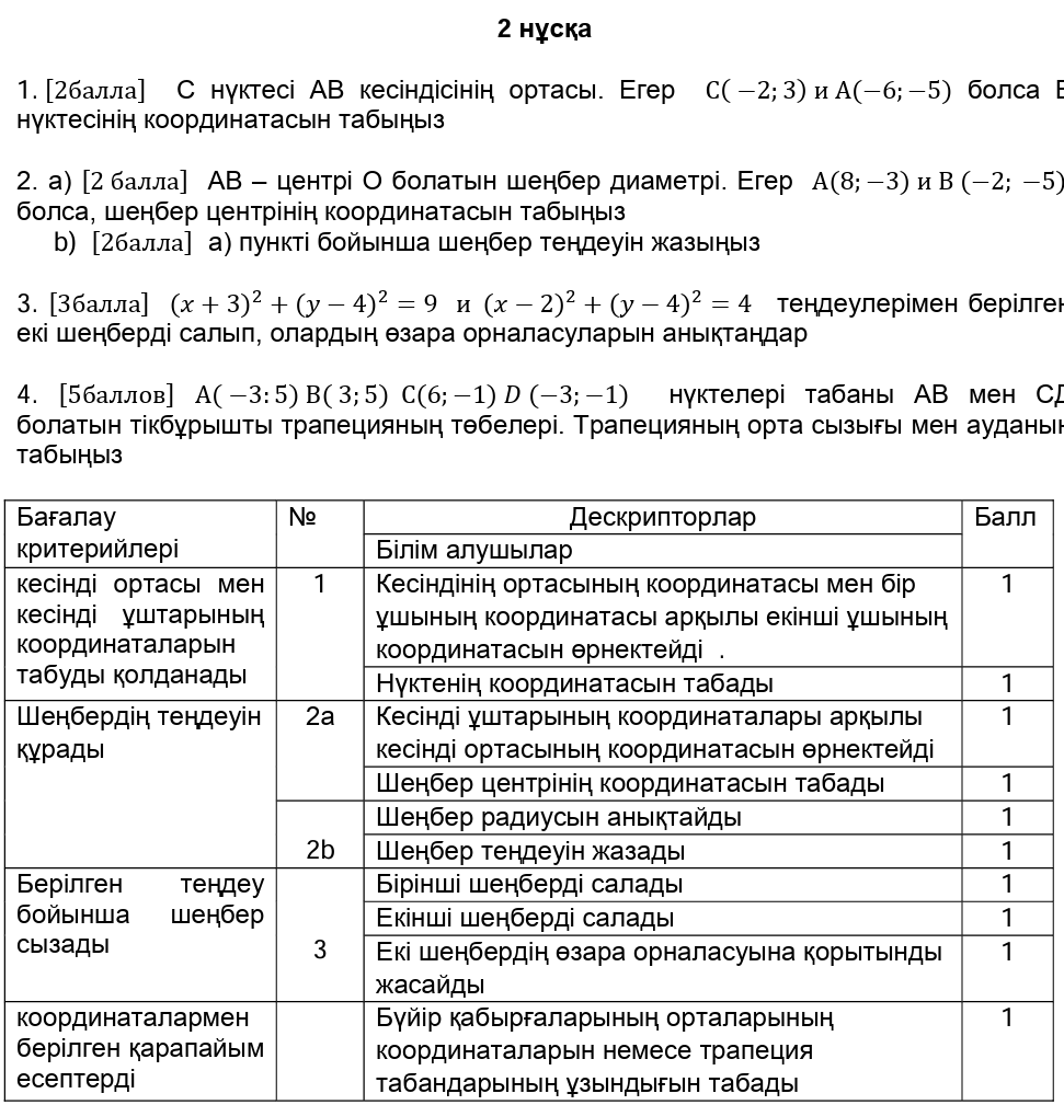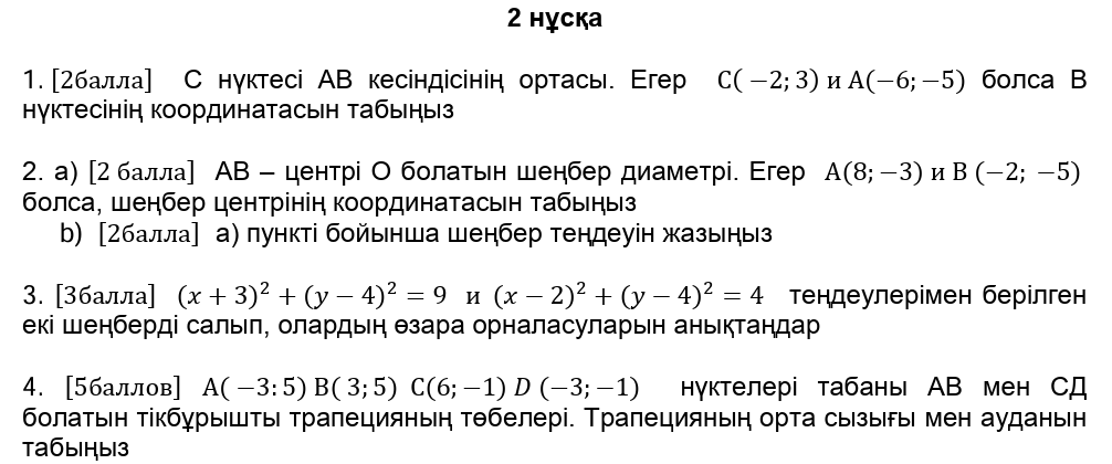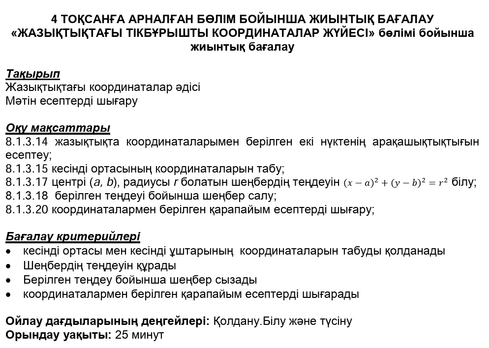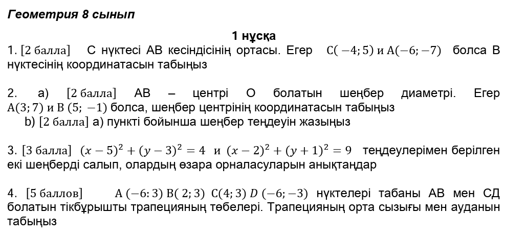 БЖБ№1 8сынып Геометрия 4токсан
