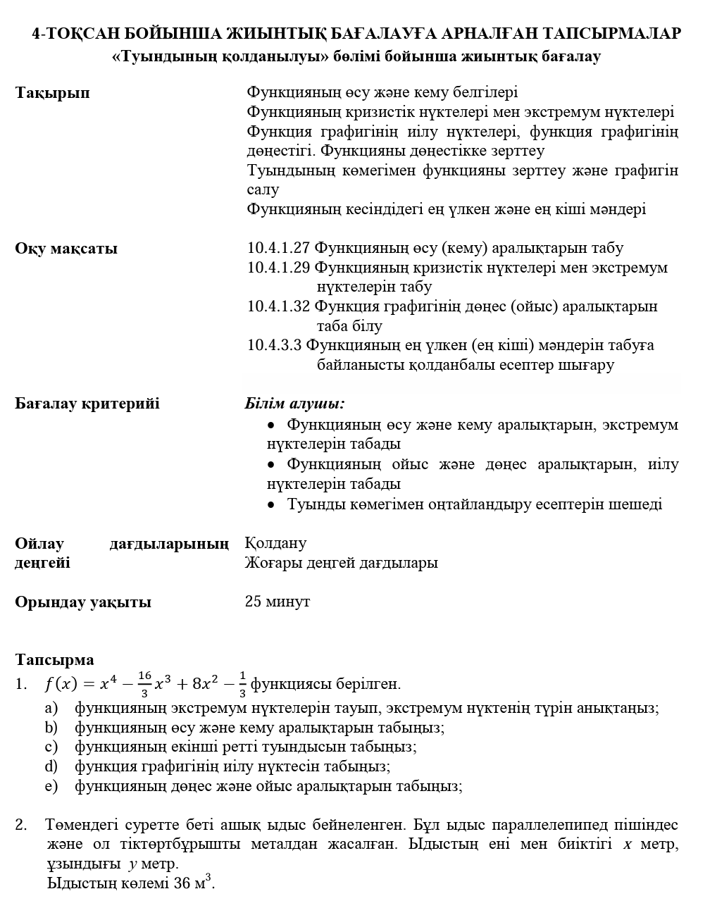 БЖБ №1 10сынып Алгебра ІVтоқсан