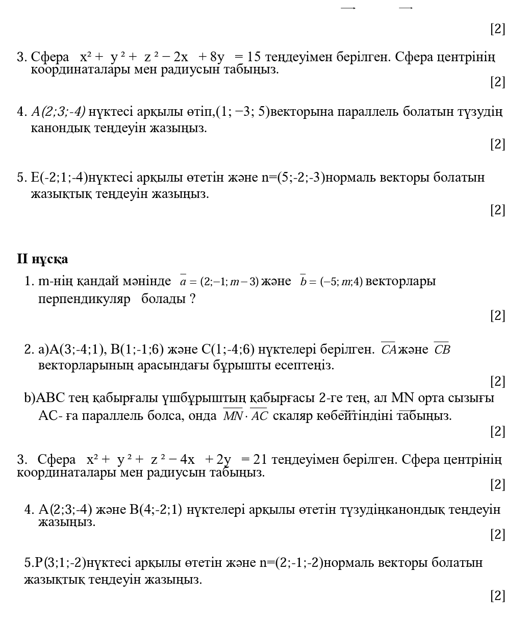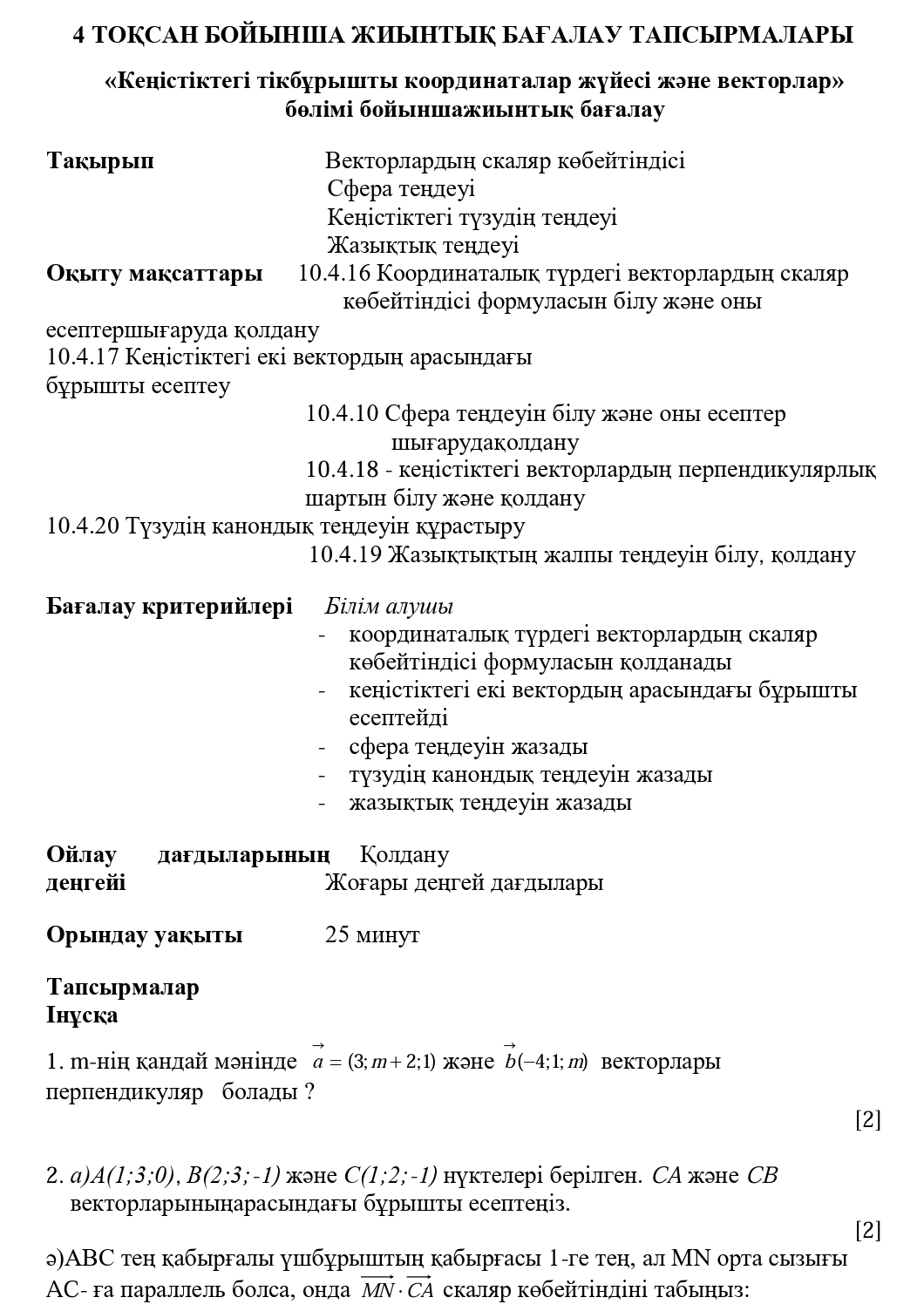 БЖБ №1 10сынып Геометрия ІVтоқсан