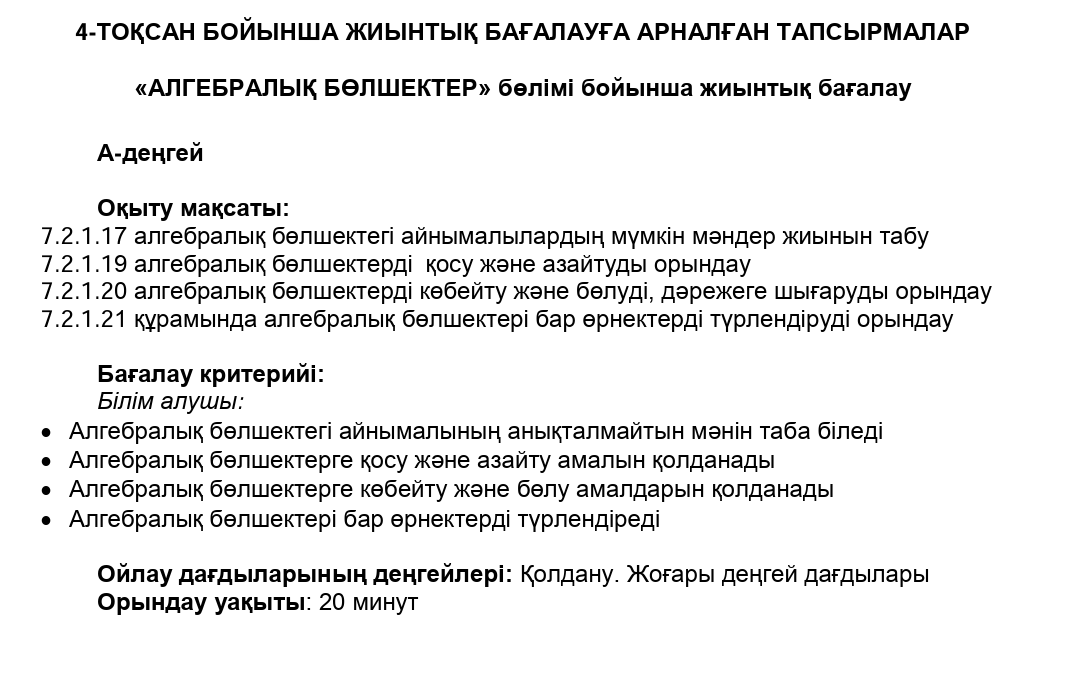 БЖБ №1 7сынып Алгебра 4токсан