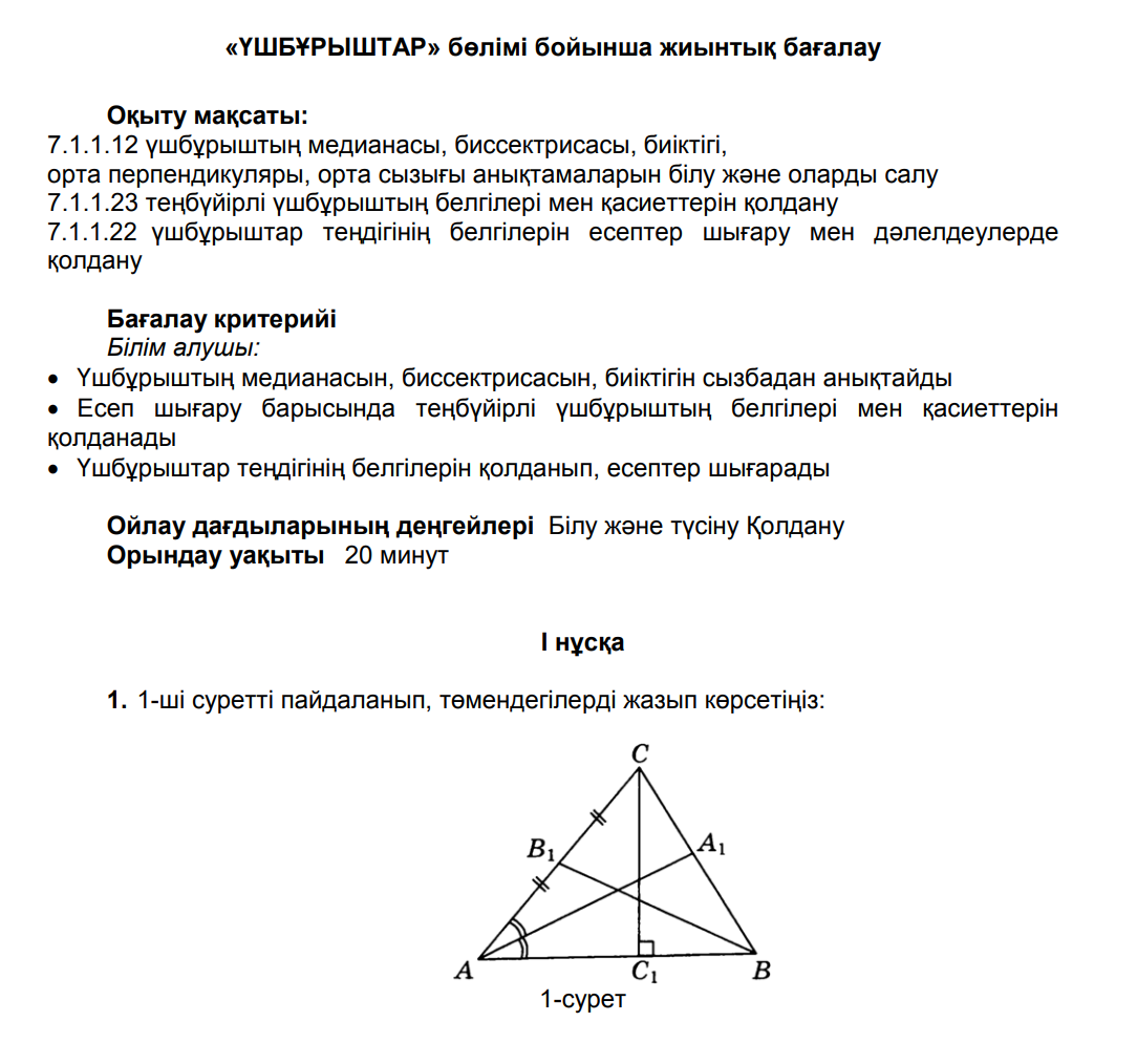 БЖБ №1 7сынып Геометрия 2токсан
