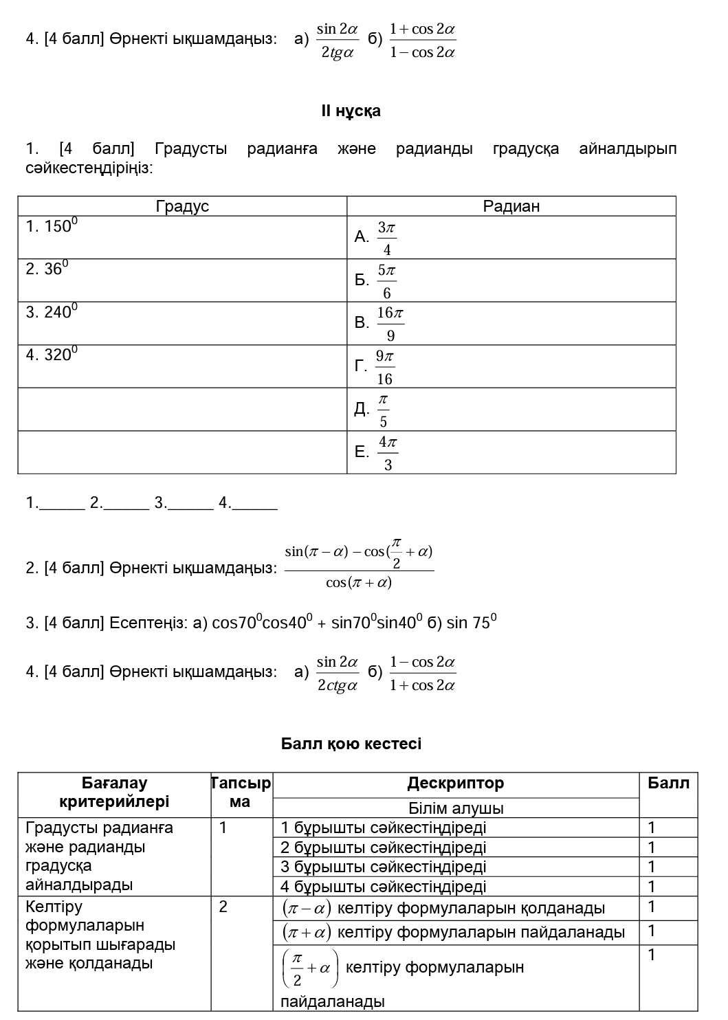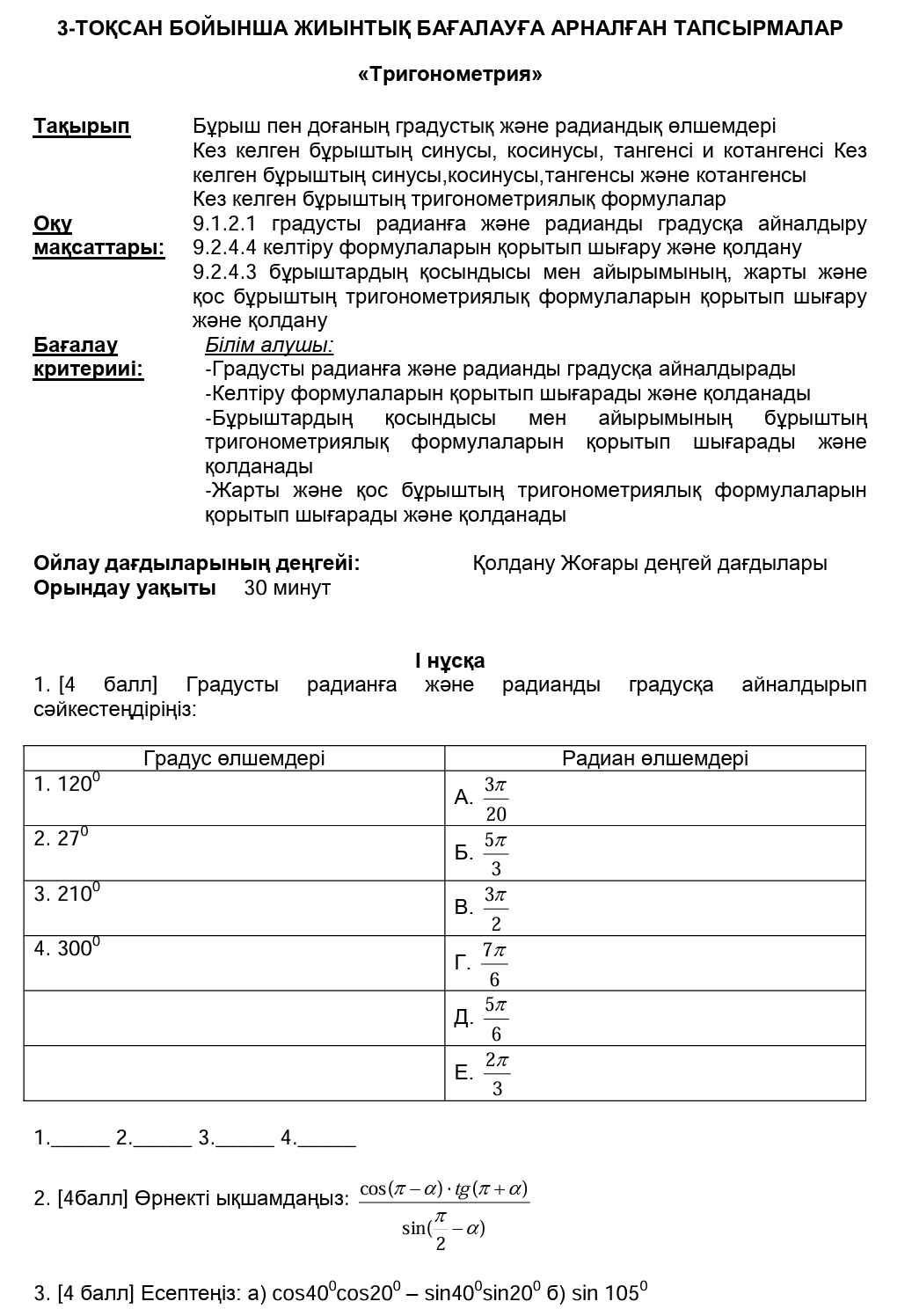 БЖБ №1 9сынып Алгебра ІІІтоқсан