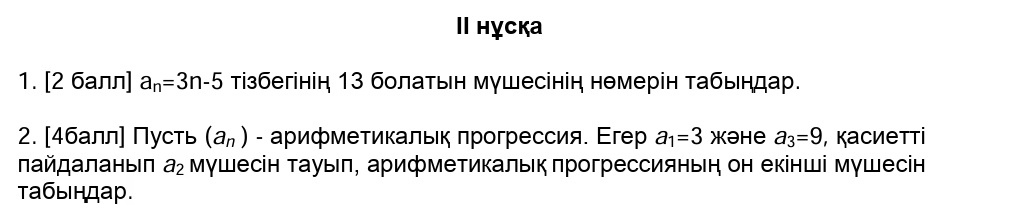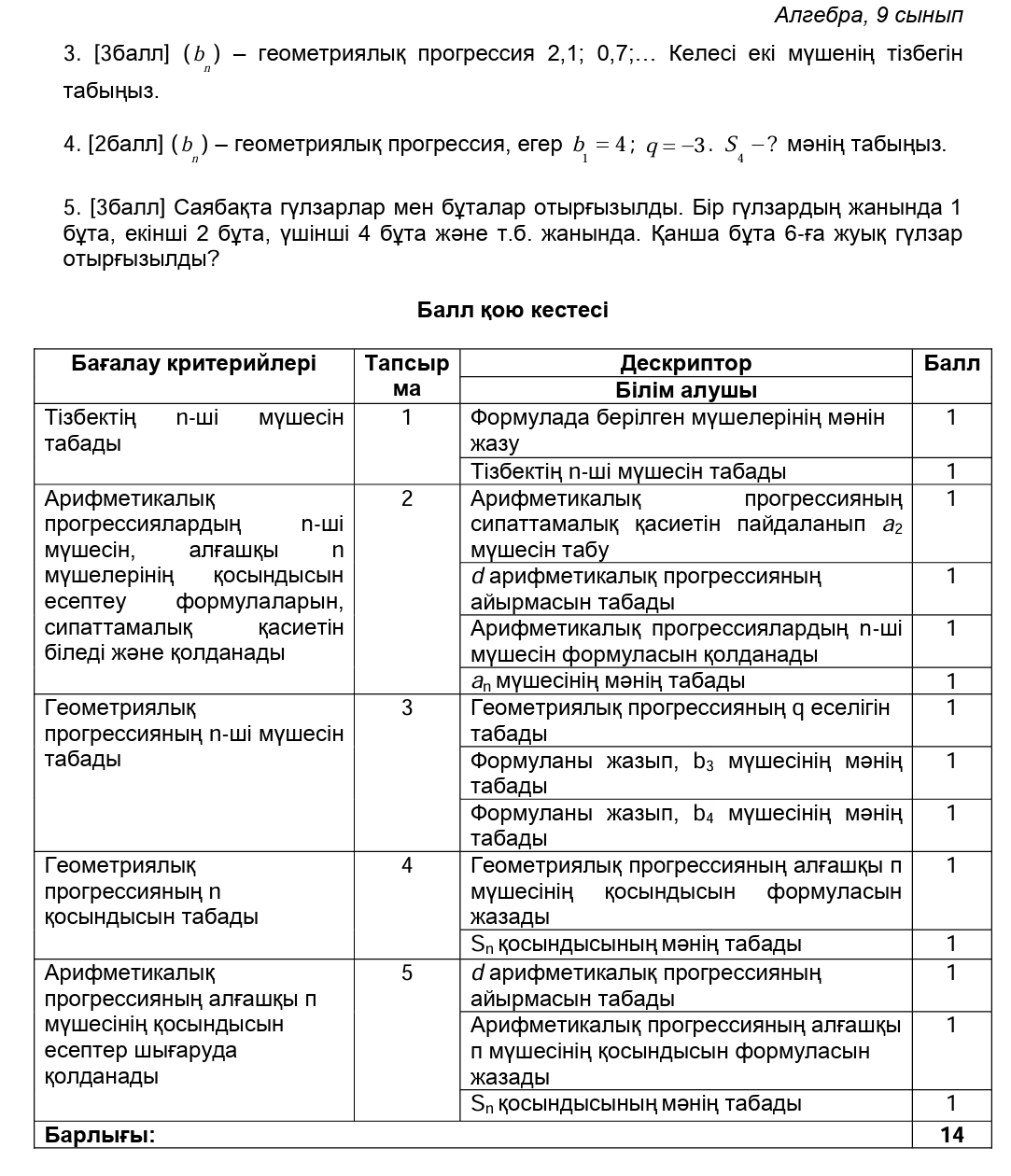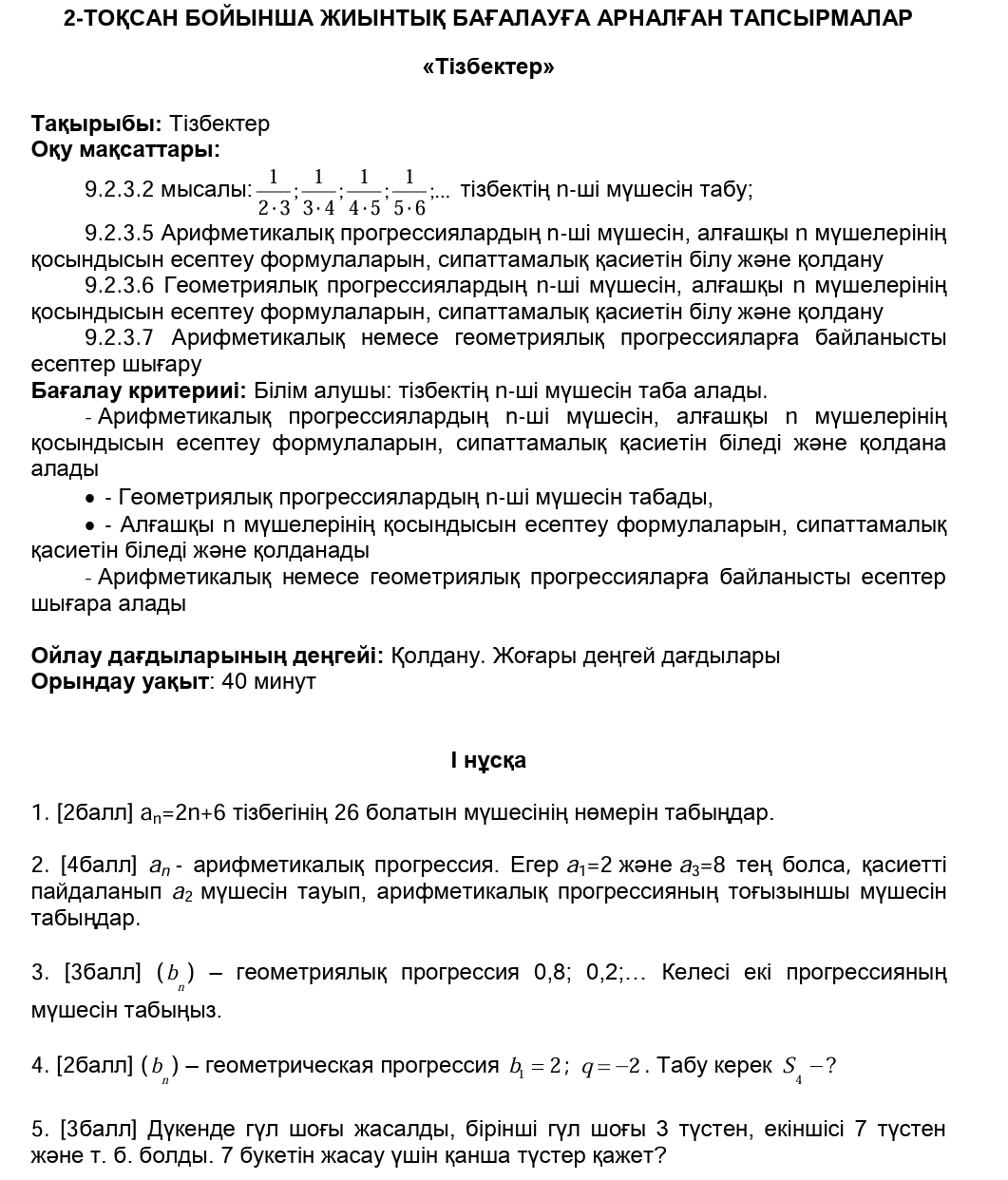 БЖБ №1 9сынып Алгебра ІІтоқсан