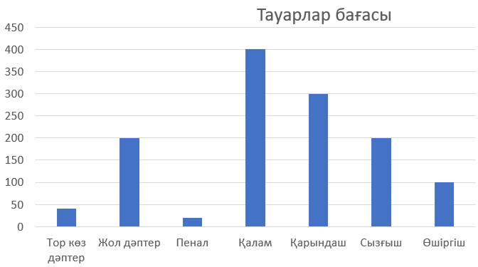 3. Әсет кеңсе тауарларының құнын есептеу үшін кесте құрды.
