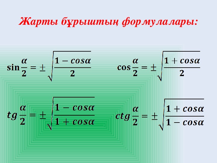 Бүгінгі сабақта Бірлік шеңбер арқылы осы формулаларды оқушылардың қорытып шығаруына мүмкіндік беру