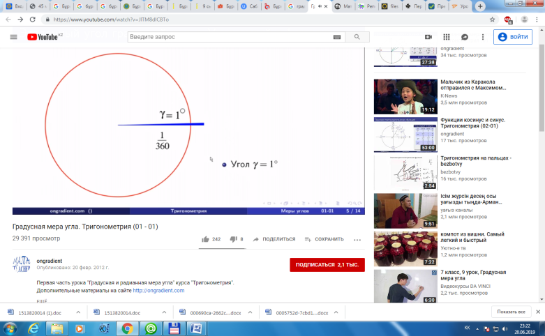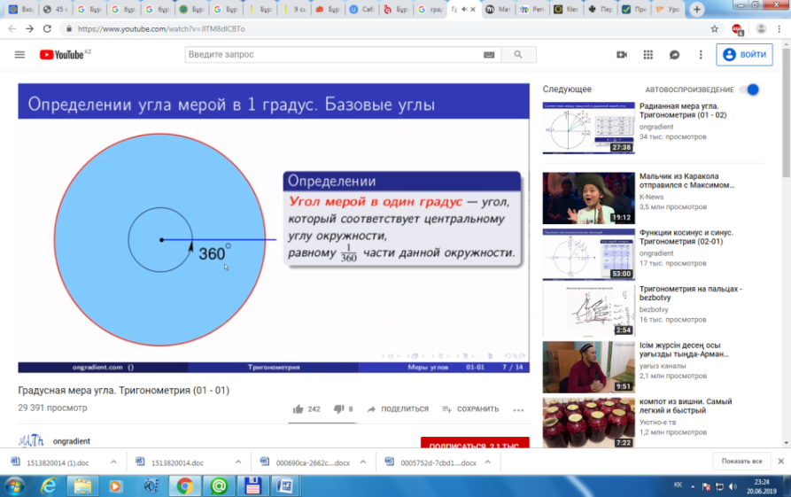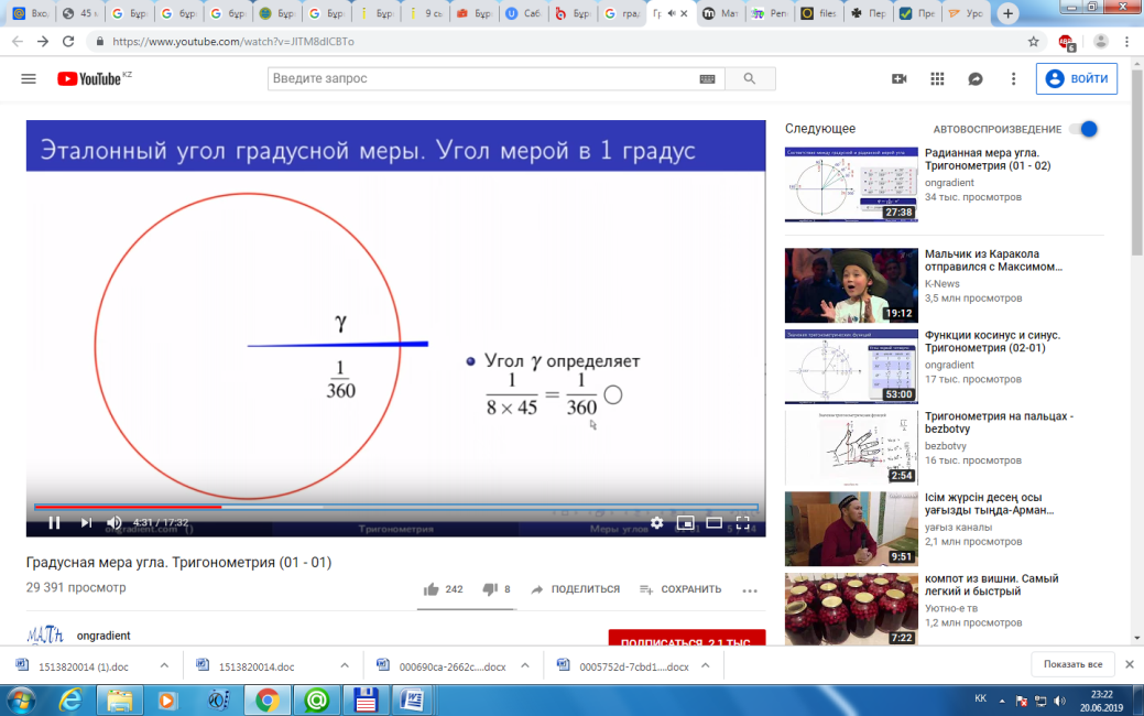 10 бұрыш деп- шеңбердің 1/360 бөлігіне тең центрлік бұрышты айтады.
