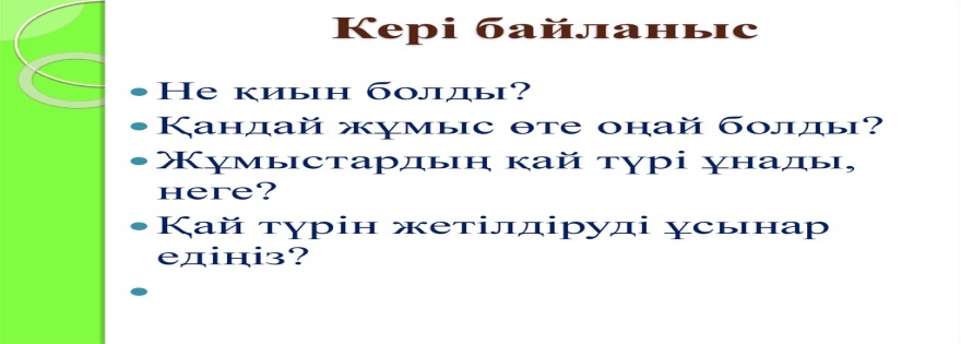 Жеке жұмыс Тапсырманы ұсыну, оқушылар өз бетімен орындауы |