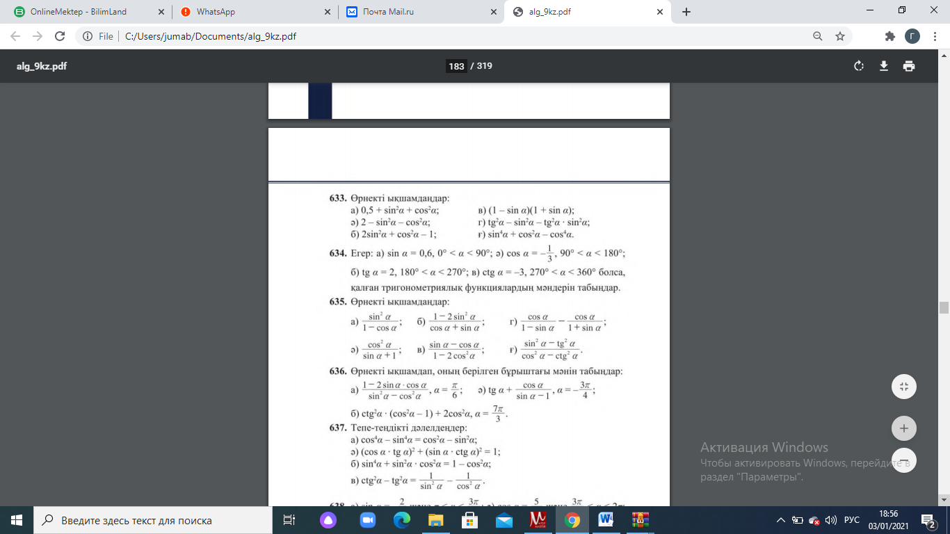 №3. Төмендегі өрнектерді сүйір бұрышына келтіріңіз: