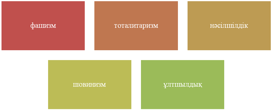 фашизм, тоталитаризм, нәсілшілдік, шовинизм, ұлтшылдық ұғымарына анықтама береді |