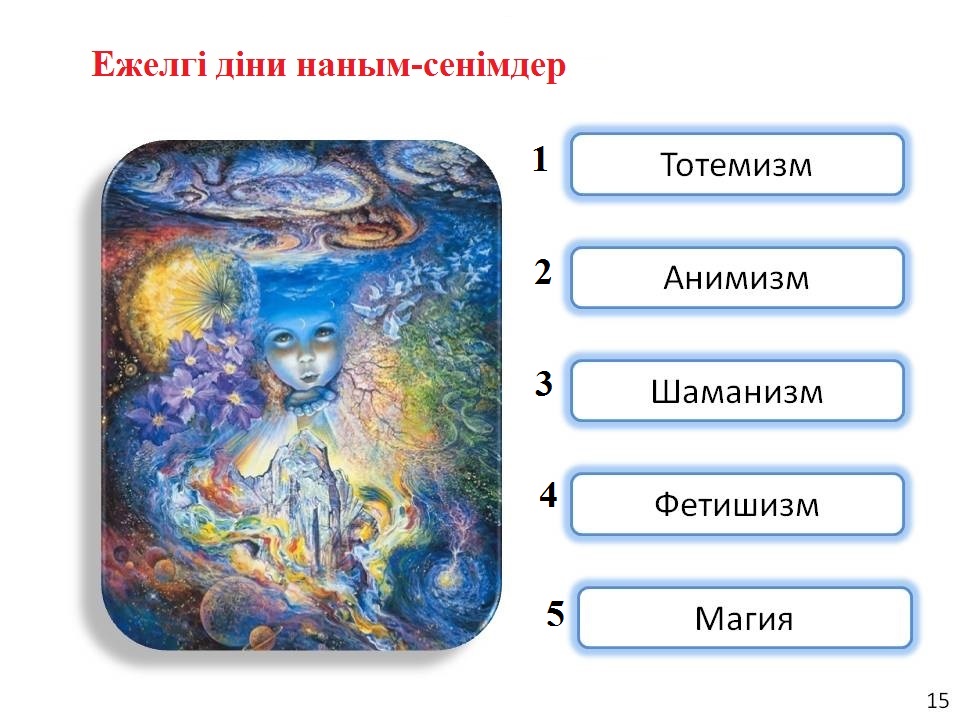Ежелгі діни наным - сенімдерді мағанасына қарай сан арқылы анимизмніңсайкесін табады |