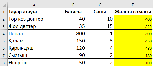 3.2. Ұяшықтағы формула бойынша мәнін тап: =В5*С5?