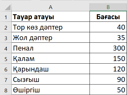 3. Әсет кеңсе тауарларының құнын есептеу үшін кесте құрды.