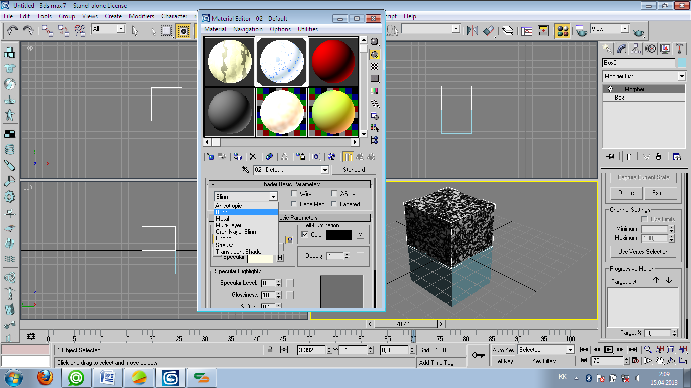 Morpher – нысанды оның формасына қарай бояуды басқаруға мүмкіндік береді. Morpher модификаторымен бірге қолданылады.