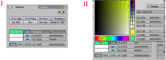 Нысанның түсін екі түрлі әдіспен қоюға болады (3.6.2-сурет): біріншісі, Col батырмасына шертіп, сол жерден R (red), G (green) және B (blue) қозғалтқышын жылжыту арқылы керекті түсті аламыз. Ал екіншісі, Col батырмасының сол жағында орналасқан түс палитрасына басып, сол жерден керекті түсті таңдаймыз.