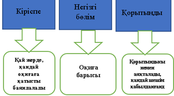 Дескриптор: -шығарманың кіріспе бөлімін анықтайды-1б; -негізгі бөлімде оқиға барысын ретімен баяндайды-1б; -шығарманың қорытындысын дұрыс анықтайды-1б;