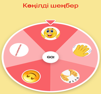 Психологиялық ахуал “Көңілді шеңбер” әдісі Оқушылар айналмалы шеңбер арқылы көрсетілген суреттердегі қимылдарды қайталайды. Сабаққа сәттілік тілейді. Оқушылар берілген сұрақтарға жауап береді. Сурет бойынша өз ойларын айтады. Сабақтың тақырыбын біледі, оқу мақсатымен танысады. |