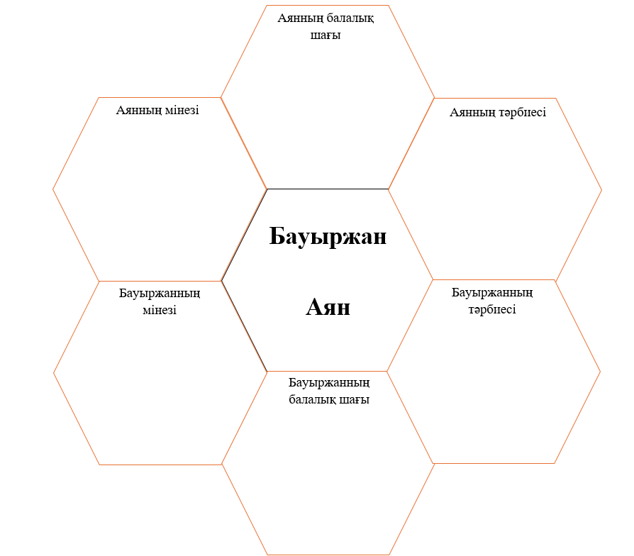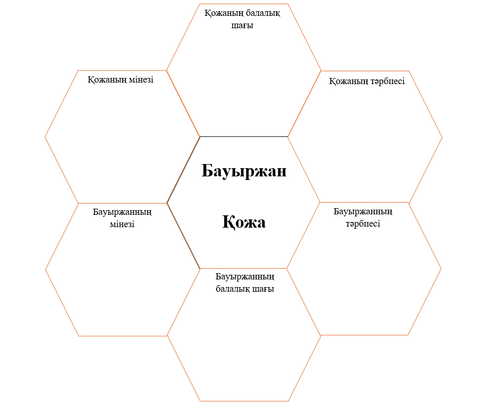 1-тапсырма. Жұптық тапсырма «Араның ұясы» әдісі Бауыржанның балалық шағын Бердібек Соқпақбаевтың «Менің атым Қожа», С.Мұратбековтың «Жусан иісі» шығармаларындағы басты кейіпкерлермен салыстырыңдар.