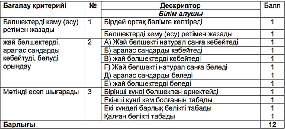 БӨЛІМ БОЙЫНША ЖИНАҚТЫ БАҒАЛАУ «Жай бөлшектерге амалдар қолдану»