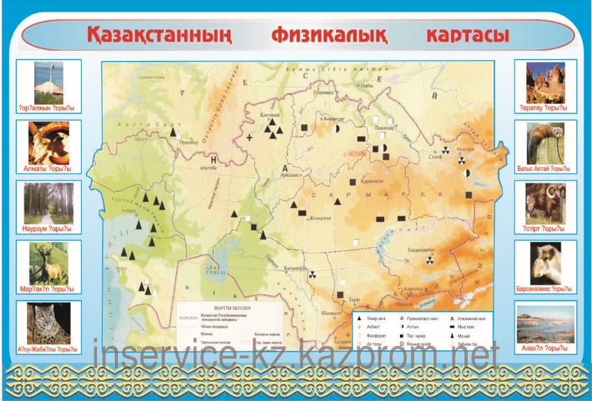 8.2.1.1 Тақырыптық карталарды сипаттайтын қосымша элементтерді құрастырады: профиль, диаграмма, график, кесте 8.2.1.2 Географиялық шартты белгілер мен карталарды сипаттайтын қосымша элементтерді қолдана отырып, тақырыптық карталарды оқиды 8.2.1.3 Географиялық номенклатура нысандарын кескін картадан көрсетеді |