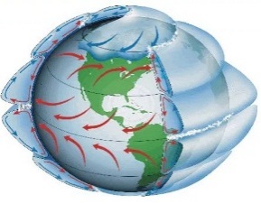Гольфстрим, Курасио, Батыс Желдер ағыстарының бағытын сызықтық белгімен көрсетеді; |
