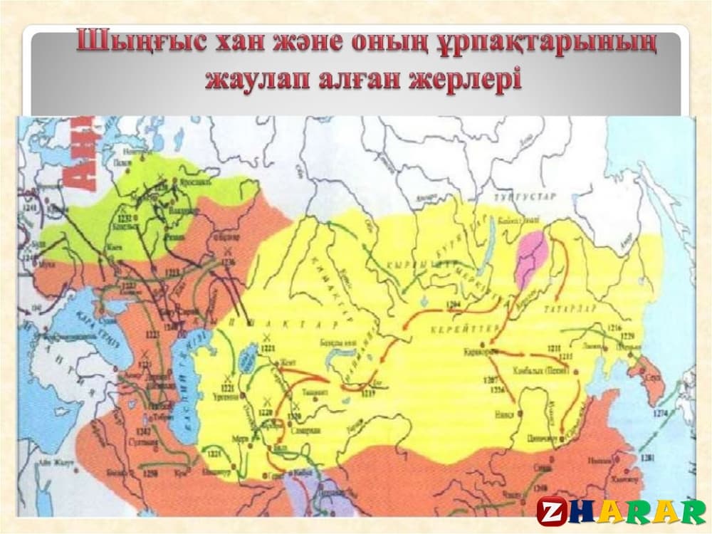 ІІ тапсырма: Картаны басшылыққа ала отырып, Шыңғыс ханның жорықтарын анықтаңыз.