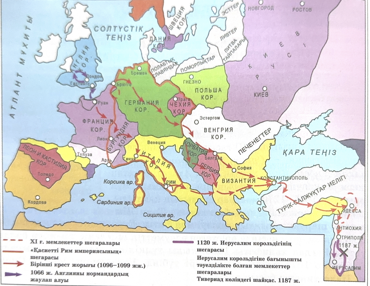 6.3.2.6 картада оқиғаларды даму динамикасында белгілей отырып, 1-4 жорықтар мысалында крест жорықтарының себеп-салдарын анықтау