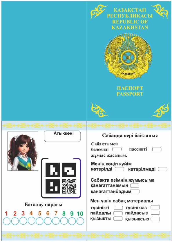 Сендерге қызықты болды деп үміттенемін. Оны алдарыңда жатқан паспорт парақшасын толтыру арқылы білдіре аласыңдар. Рефлексия «Паспорт парақшасы» Шынында да, математика –