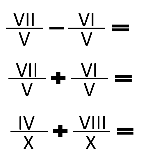 Дескриптор Рим цифрларын түрлендіреді. Бөлімдері бірдей бөлшектерді қосуды және азайтуды біледі. 4 балл