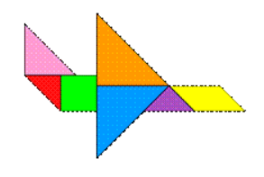 Топтасып ойын ережесі бойынша танграмды қиып , әр бөлігіндегі Бөлшектерді қосу және азайту амалдарын орындайды. Тақтадағы жауаптардың түстеріне сәйкес бөліктерді бояйды. Танграм бөліктерінен ұшақ құрастырады.