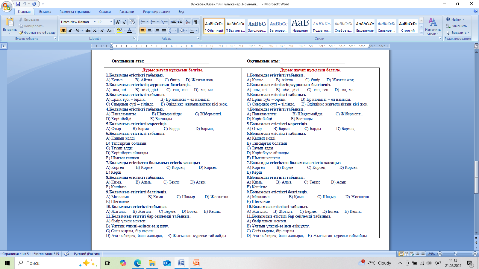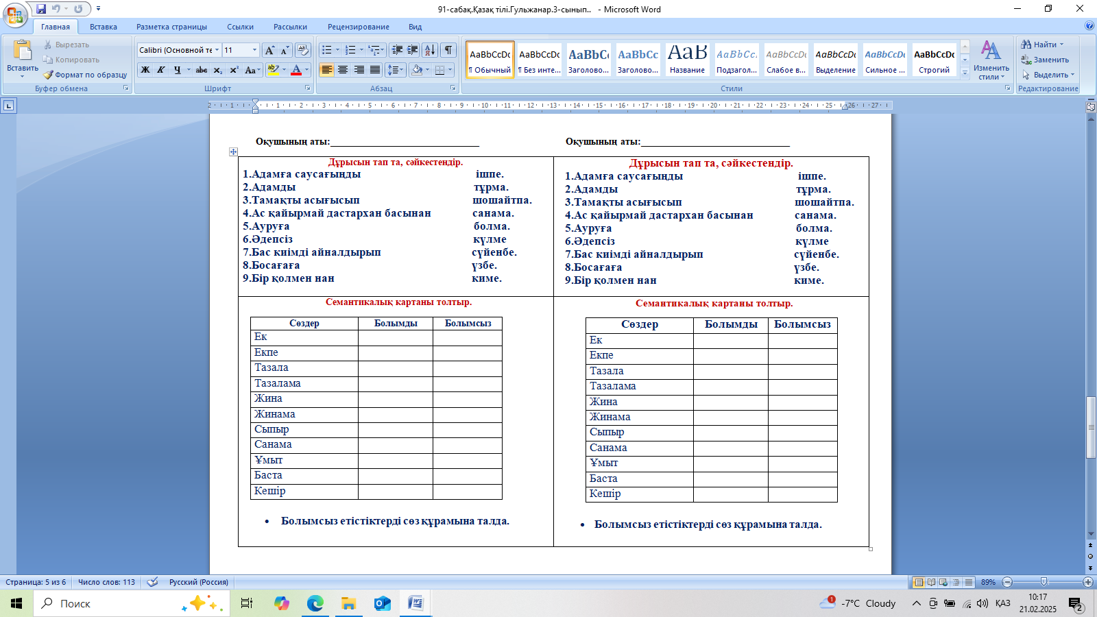 Дескриптор: Болымды етістіктерді болымсыз етістіктерге айналдырып жазады- 1б