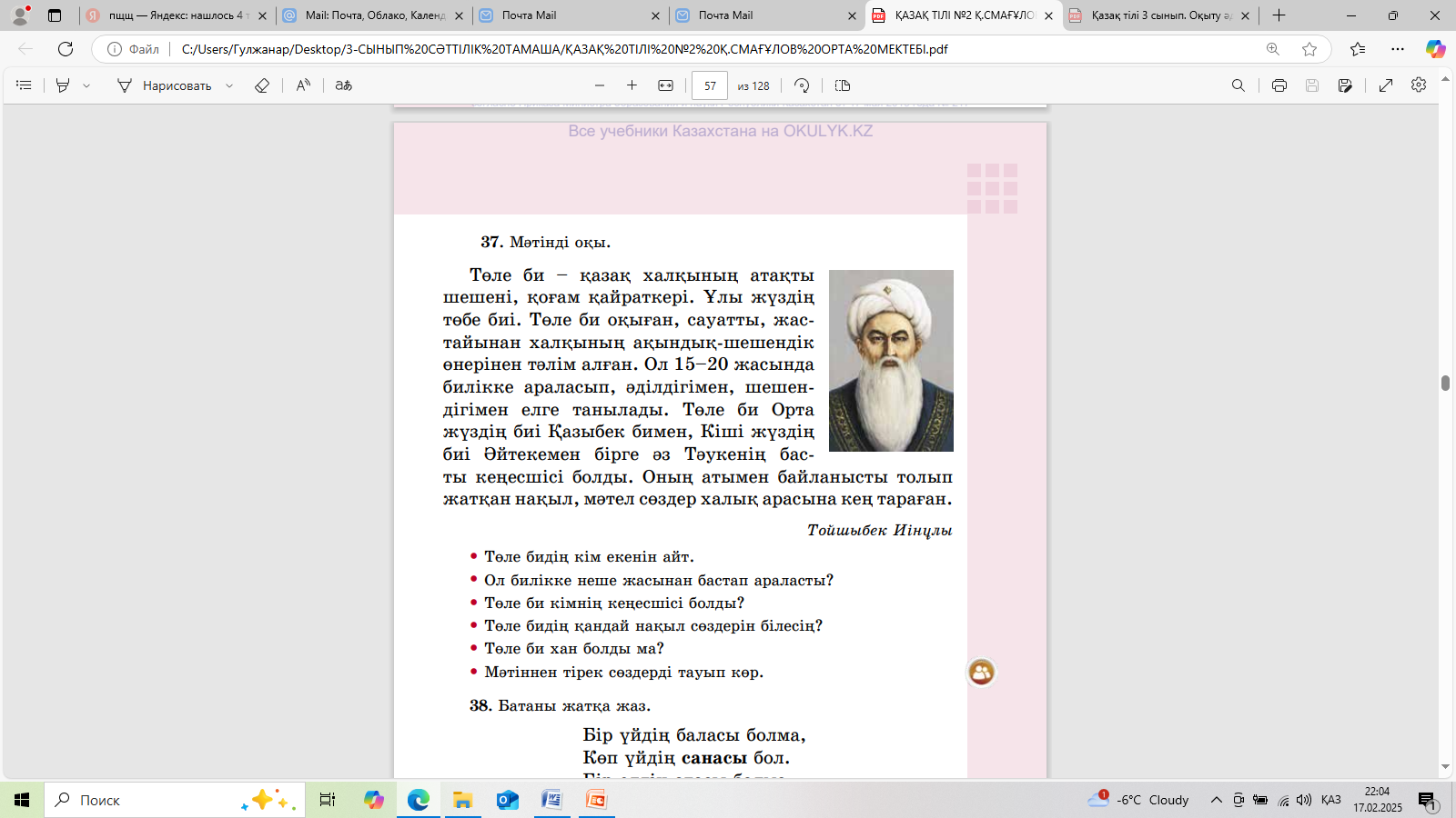 ЕБҚ Батаны көшіріп жаз. 38-ж.