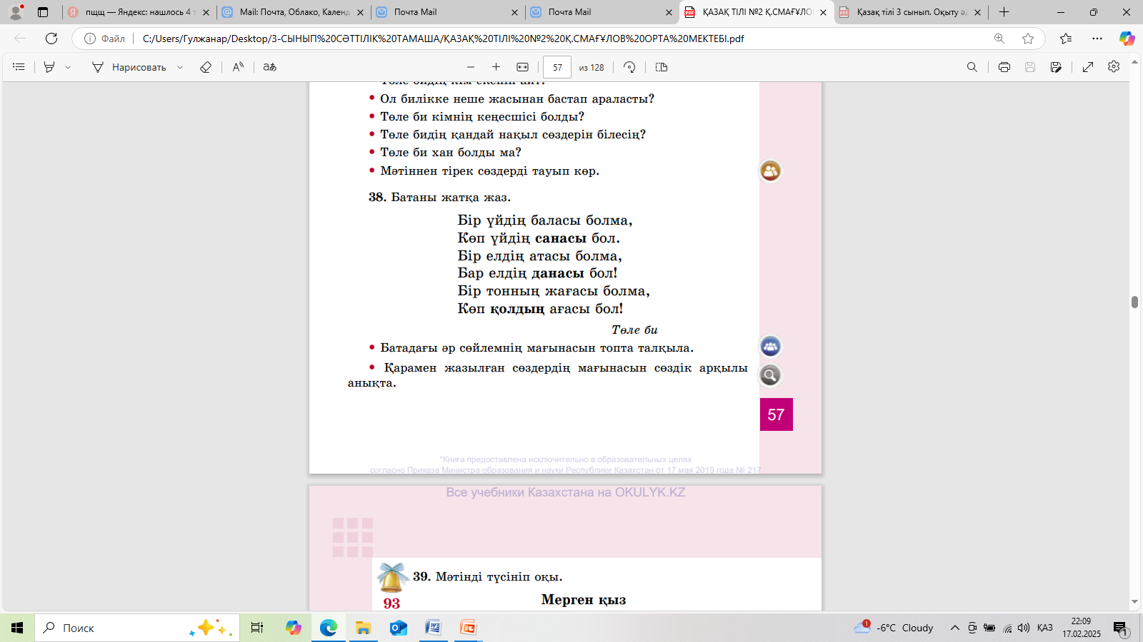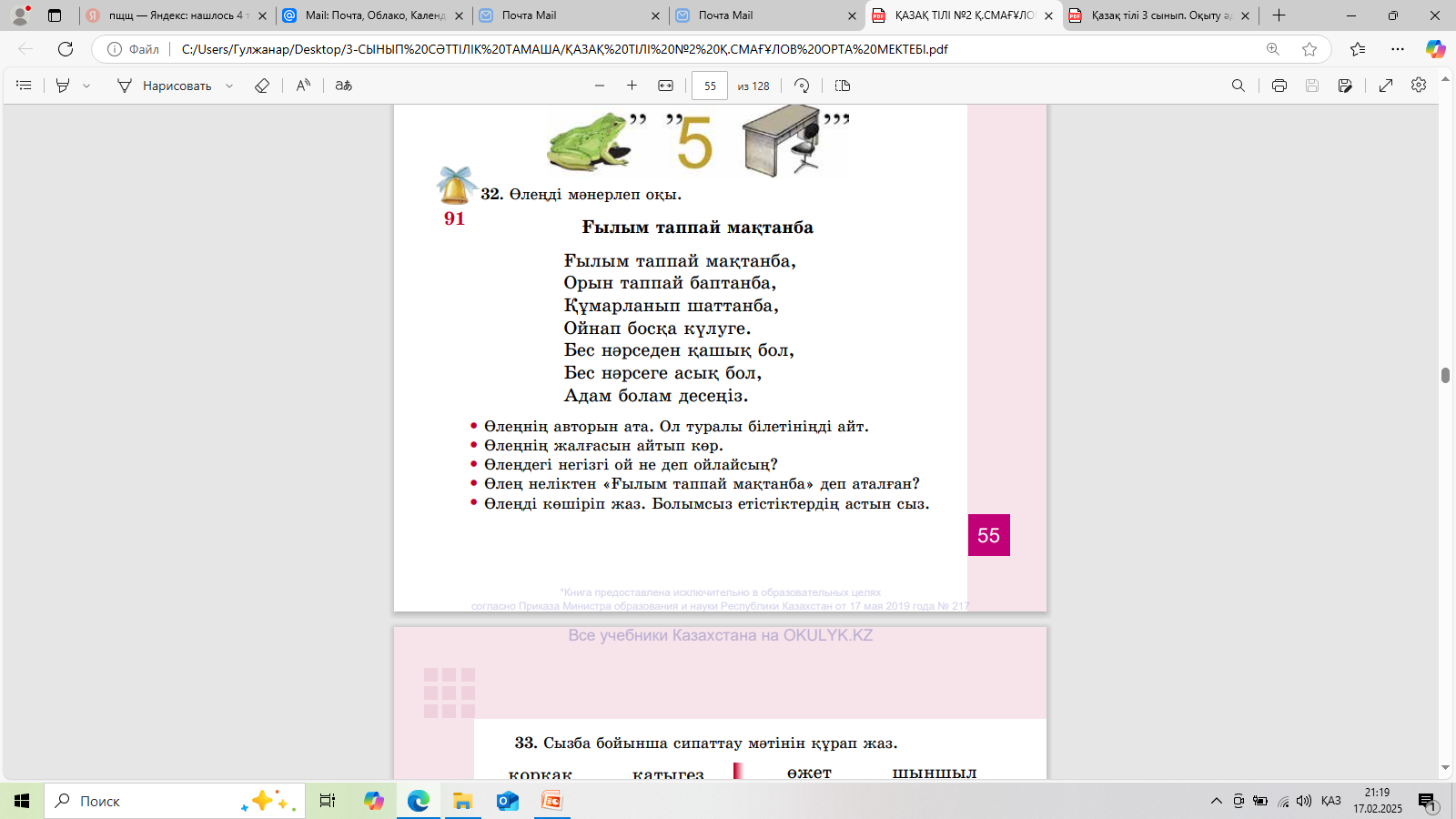 ЕБҚ Өлеңді мәнерлеп оқы. 32-ж.