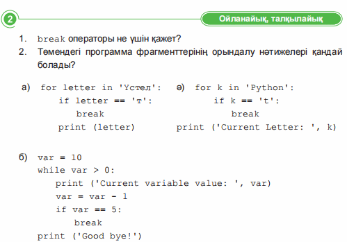 жеке тапсырма ұсынылады, берілген тапсырма бойынша өз ойларын