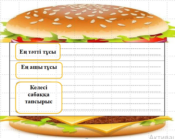 ІІ Үй тапсырмасы Оқушылардан «Ұяшық» әдісі арқылы өткен тақырып бойынша жауап алады «Киноматофера» әдісі арқылы сұрақтар қою отырып жаңа сабақтың тақырыбын, мақсатын анықтайды. . |