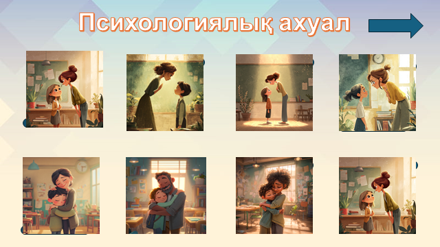 Оқушылар шеңберге тұрып «Тілек» жи тәсілі арқылы көңілді орта қалыптастырамыз.