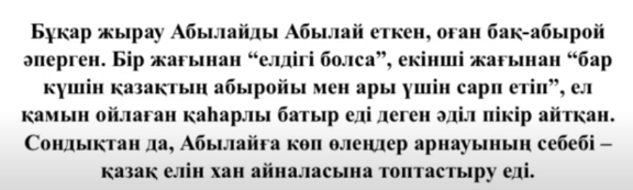 3-тапсырма.Ж. Толғауда Бұқар жырау мен Абылай хан арасындағы психологизм қалай көрінеді?Абылайға қандай баға бересің?