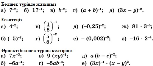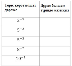 Теріс көрсеткішті дәреже а – n = ( 1 / an ) Тапсырма 1