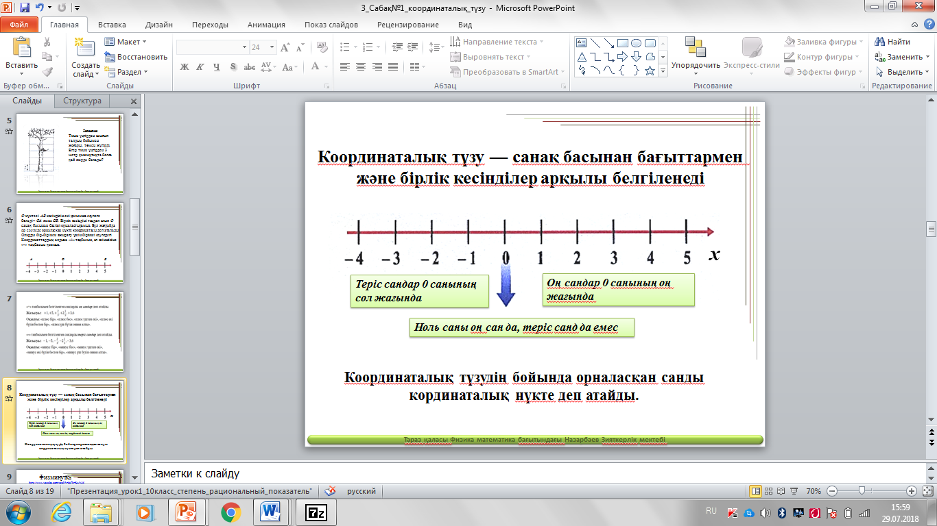Координаталық түзуде келесі