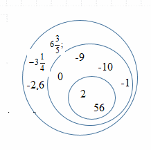 Мысалы: 2; -2,6; 1) N-натурал сандар жиынын; 2) Z- бүтін сандар жиынын; 3) Q-рационал сандар жиынындарының Эйлер-Венн дөңгелектерін құрыңыз.